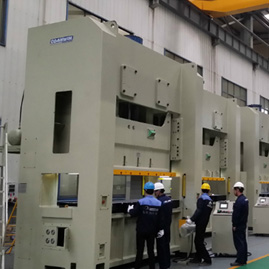 閉式雙點偏心大齒輪壓力機S2N固安力沖床機身為橫梁、立柱、底座分體閉式結構,龍門高速沖床結構用四根拉緊螺桿拉緊,剛性好。·偏心齒輪